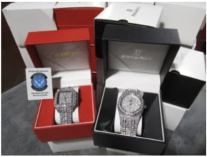 On December 5, officers opened two shipments from Hong Kong. The first parcel heading to Staten Island contained 400 fake Cartier watches, 26 counterfeit Moncler hats, and 30 fake Chrome Hearts hats. The second shipment heading to Irving, Texas held eight more fake Cartier watches and 13 phony Audemars Piguet timepieces.