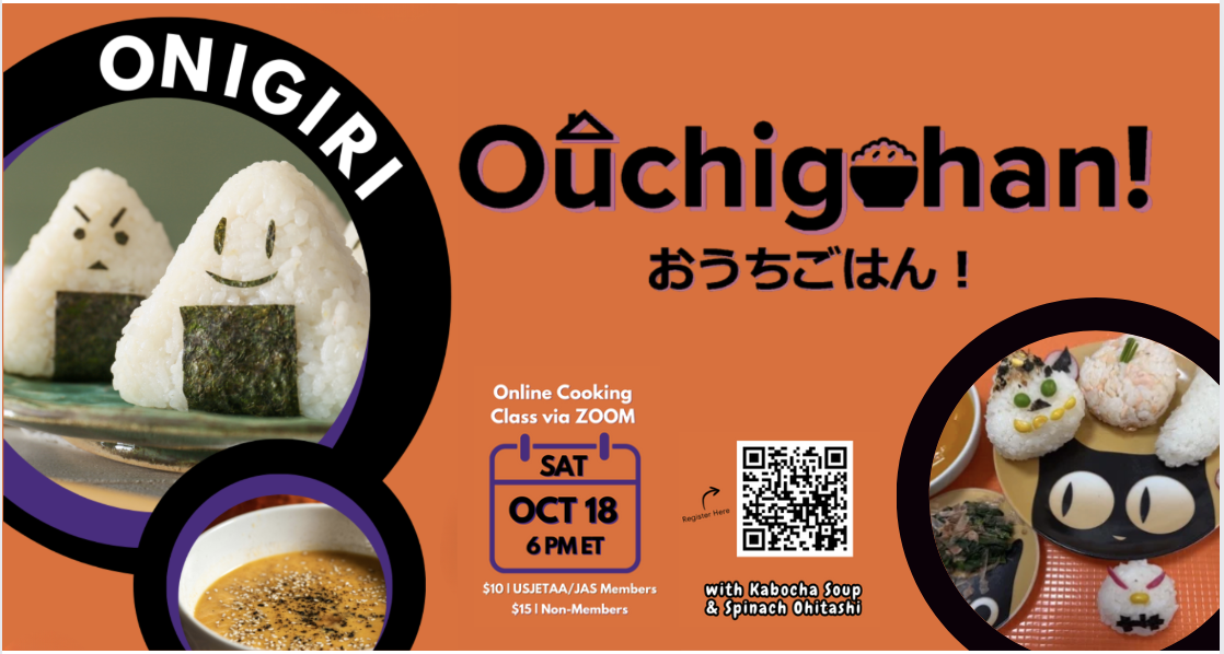 On October 18 at [time from registration], log into Zoom from your kitchen. Spend an evening learning authentic Japanese home cooking from an expert instructor. Make delicious food your family will actually eat. Decorate rice balls with Halloween faces. Take photos. Post with #OnigiriAction. Know that your photos just provided 25 school meals to children in need (5 meals per photo, and you’ll take at least 5 photos).