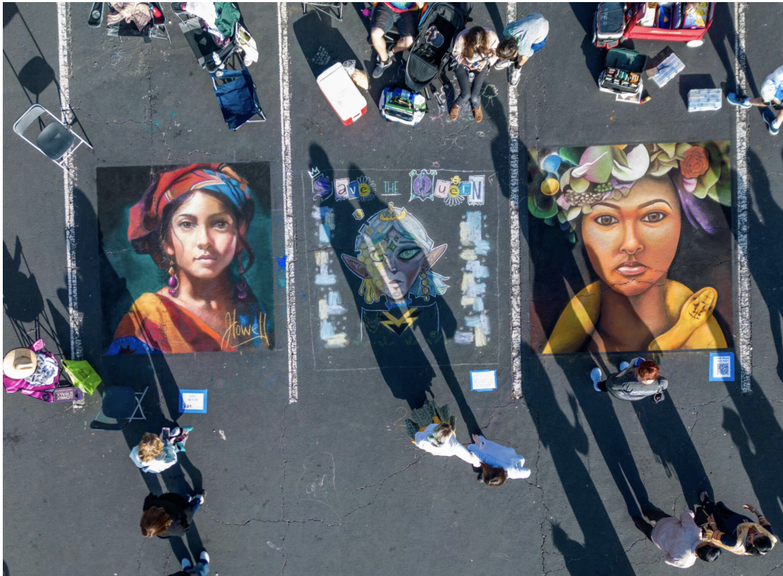 Chalk artists receive special recognition, with designated spaces for sidewalk murals and board installations. The city provides materials and space — you bring the creativity.