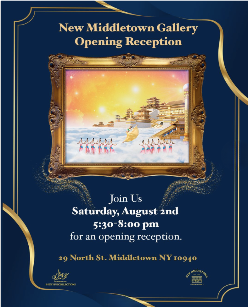 The New Middletown Gallery opening reception features Shen Yun Collections artworks with live classical music. Located at 29 North St, Middletown NY 10940