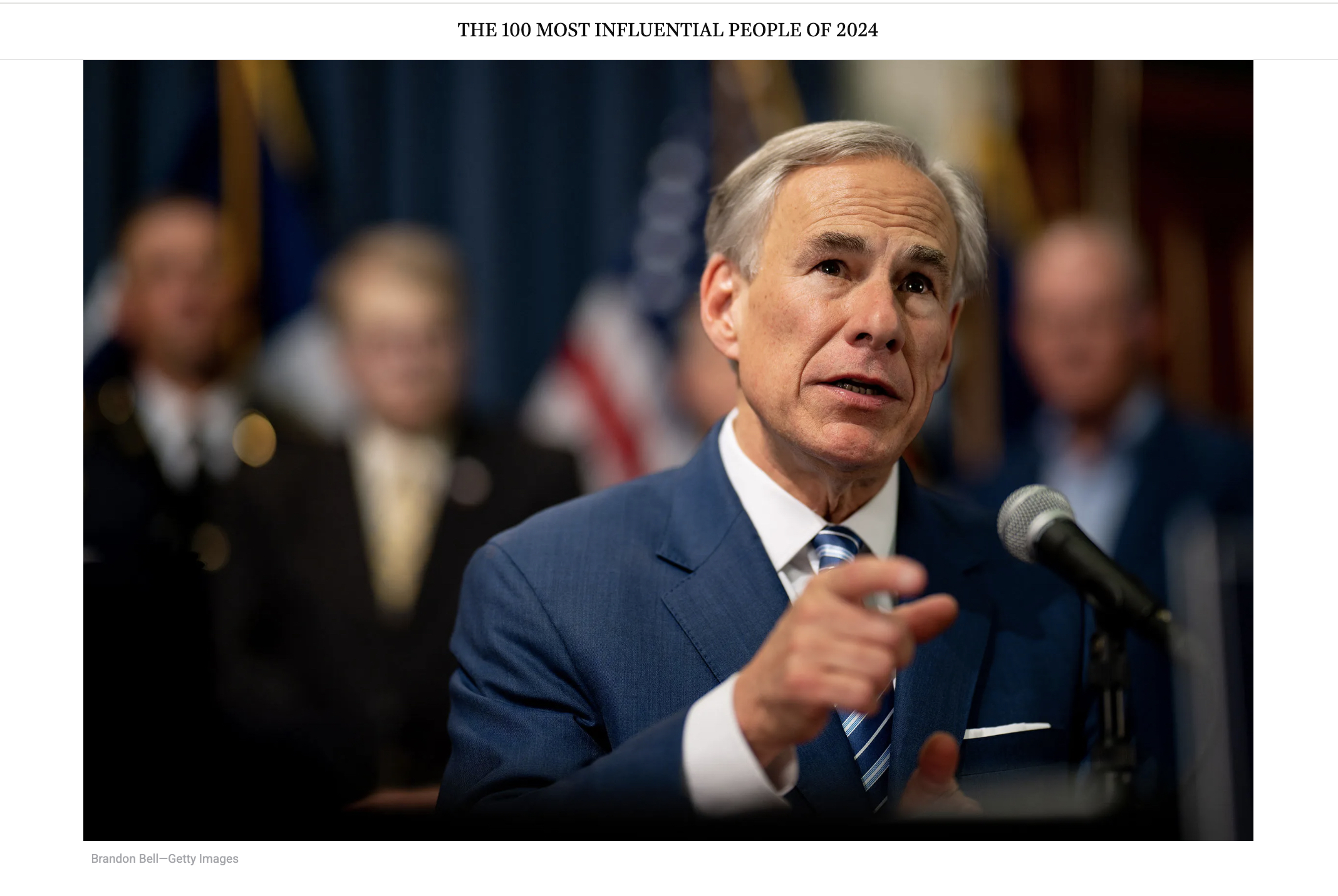 Governor Greg Abbott landed on TIME magazine’s 2024 list of the 100 most influential people in the world, putting him alongside global leaders, tech moguls, and celebrities. But what does this mean for you as a Texas resident?