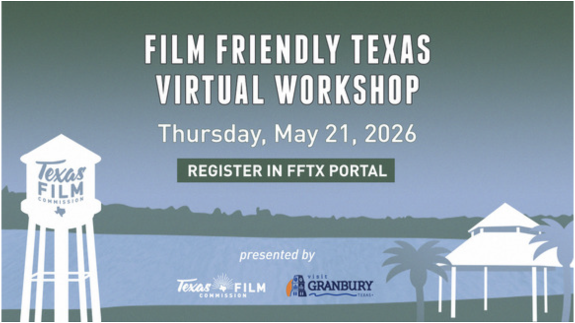Event: Film Friendly Texas Virtual Workshop Date: Thursday, May 21, 2026 Time: 9:30 a.m. – 12:00 p.m. CT Format: Virtual Co-hosted by: Texas Film Commission and Visit Granbury Registration: gov.texas.gov/film/page/fftx_workshops Program overview: gov.texas.gov/film/page/fftx_overview