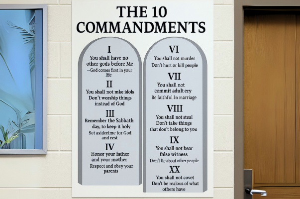 Starting September 1st, every single public school classroom in Texas will display the same thing: a large poster with the Ten Commandments. Whether you’re dropping off your kindergartner or your high school senior, this is what they’ll see on the wall every day. Here’s what you need to know about what’s actually happening.